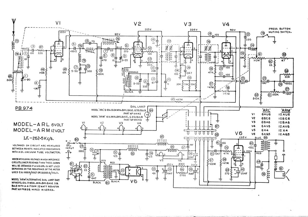There are two versions of this set. One uses a 262.5Kc/s IF, and the other uses 455Kc/s. The one most commonly seen in the JR and AORSM manuals is the 455Kc/s version.