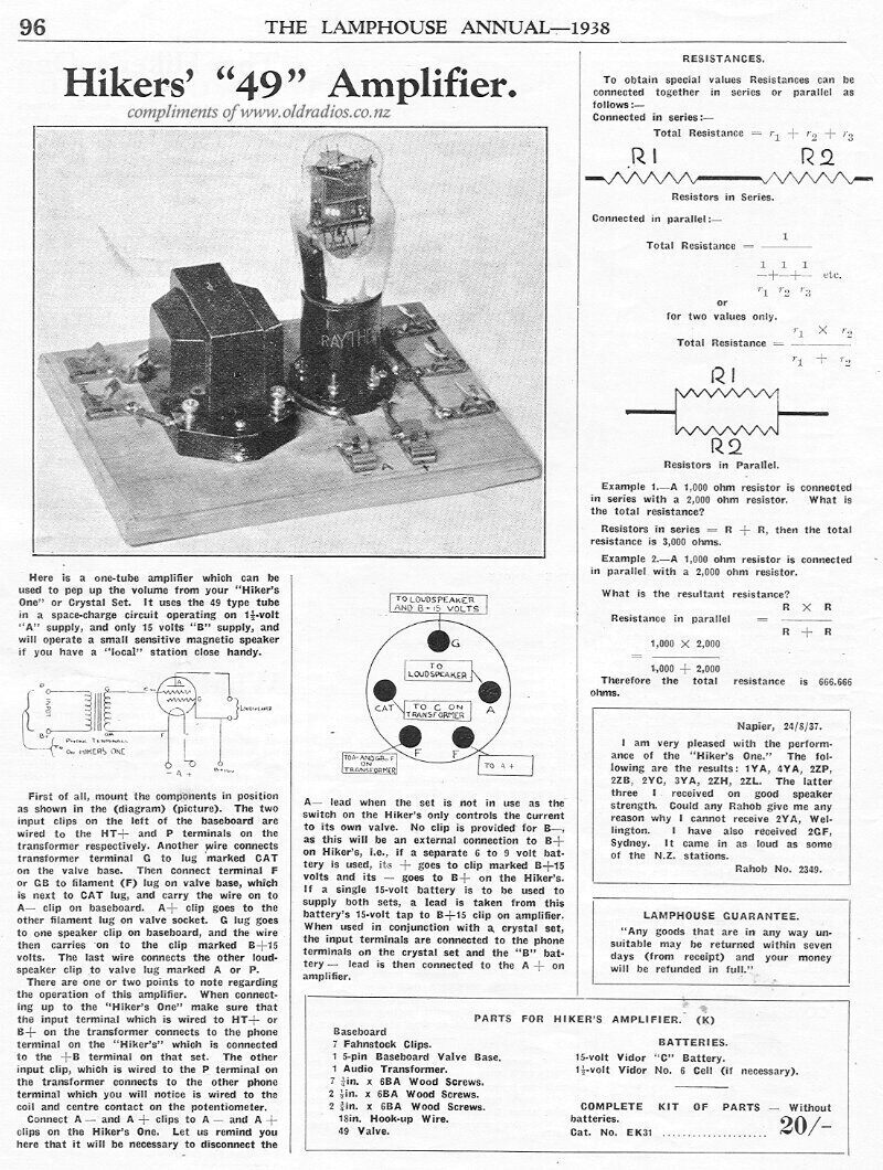 Both Radio & Hobbies and the Lamphouse also presented two valve versions of their 9V sets, using another 1Q5, 1C5, or 49 as an audio amplifier.
