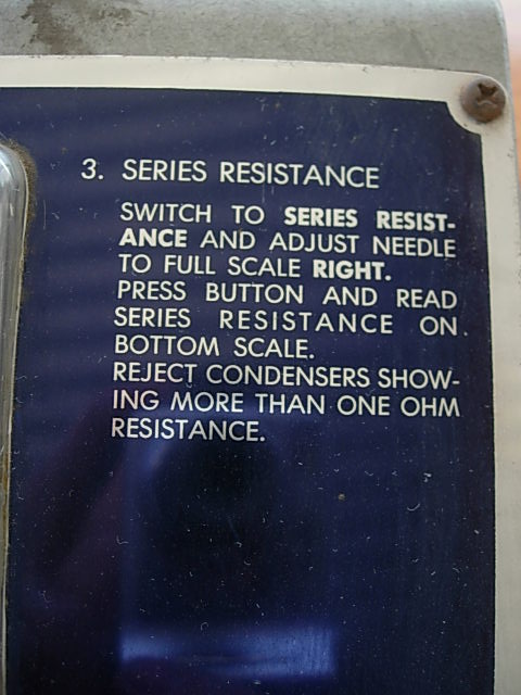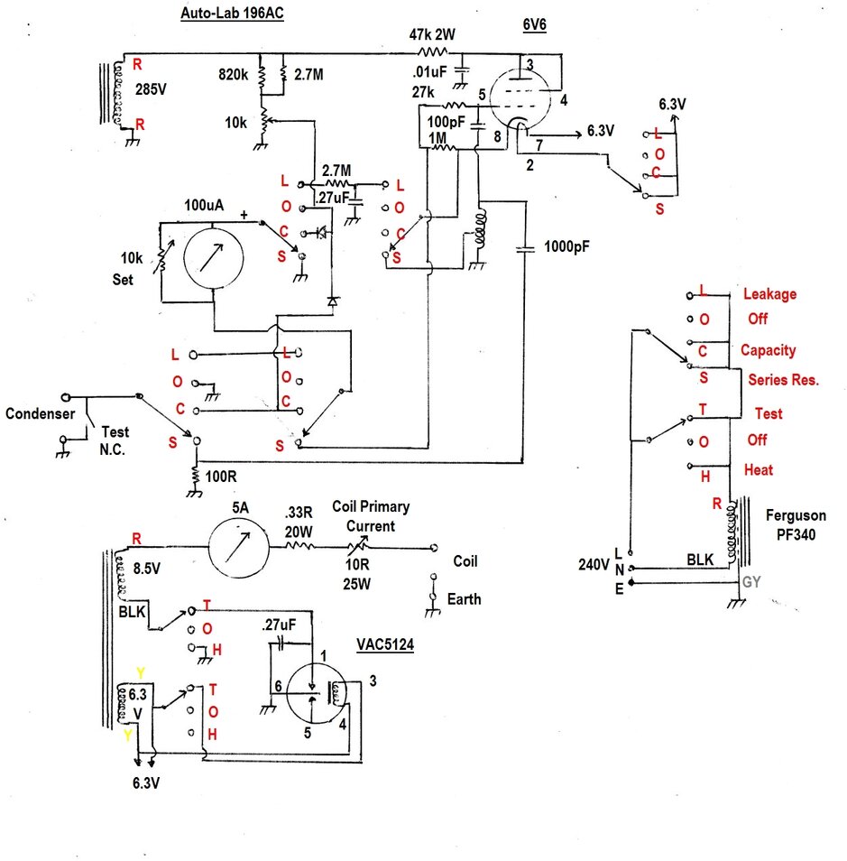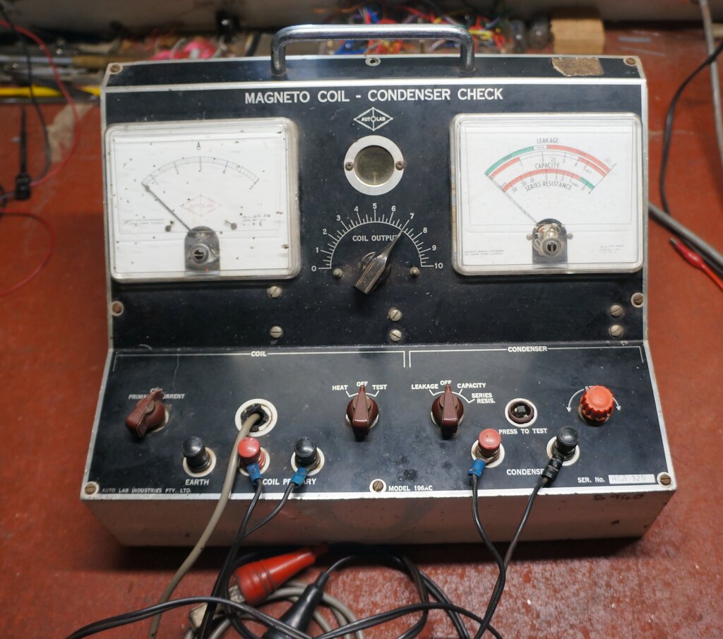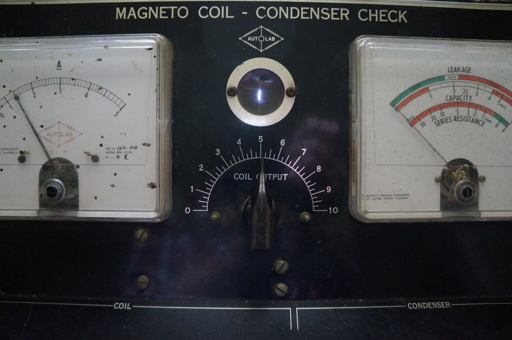 This one differs in that the 196AC is mains powered. The coil testing functions are done in the same way as the battery operated instrument. However, the 196AC is a bit more advanced, in that coil current is adjustable. The capacitance testing functions are somewhat more revealing also. With the 453 all that is available is a neon indicator for capacitor leakage. The 196AC shows leakage, capacitance value, and series resistance, all on a meter.No doubt the display of the larger two meter instrument in a garage gave an air of sophistication and competency. In reality, the tests are quite basic and hardly precision, but quite adequate for what is required in a practical sense. Construction, both mechanically, and electrically, looks adequate for the garage environment.
