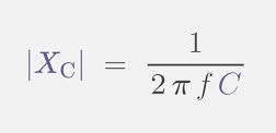 Formula for capacitive reactance. Frequency (f ) is in cycles per