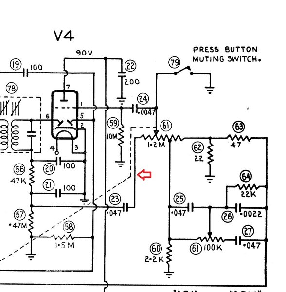27 ohm resistor is under red cambric tubing near the blue capacitor.
