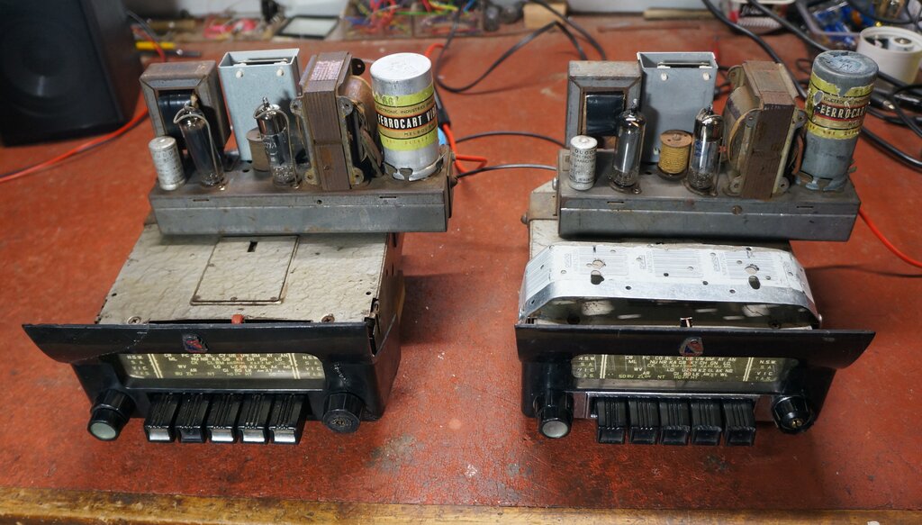 valve car radios gutted, with the parts put in the bin, and modern PCB's