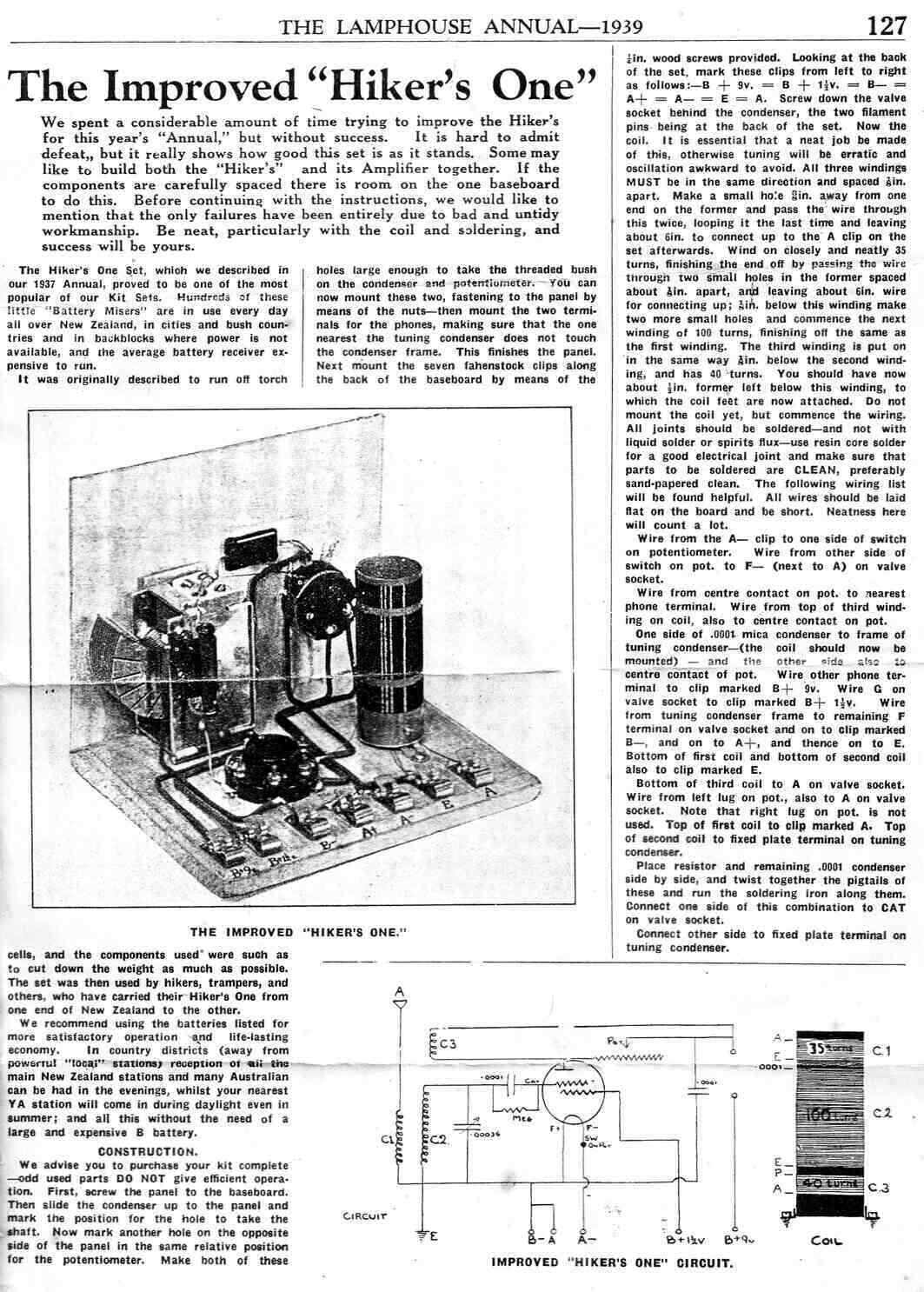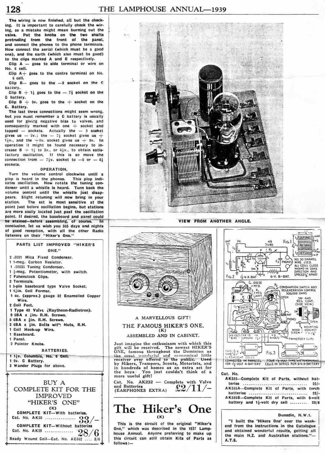 In this part of the world, the Popular Mechanics circuit was promoted by the Lamphouse electrical store in Wellington, NZ. They gave it the "Hiker's" name and sold it in kit form. The circuit was slightly modified in 1939 to become the "Improved Hiker's", and was a very popular kit. In fact, one valve receivers were always popular in Australia and NZ, right up until the transistor era. We didn't have the affluence of the middle class U.S., and radio components were expensive. Such receivers built in a compact portable form also suited our outdoor lifestyle, hence the "Hiker's" name.