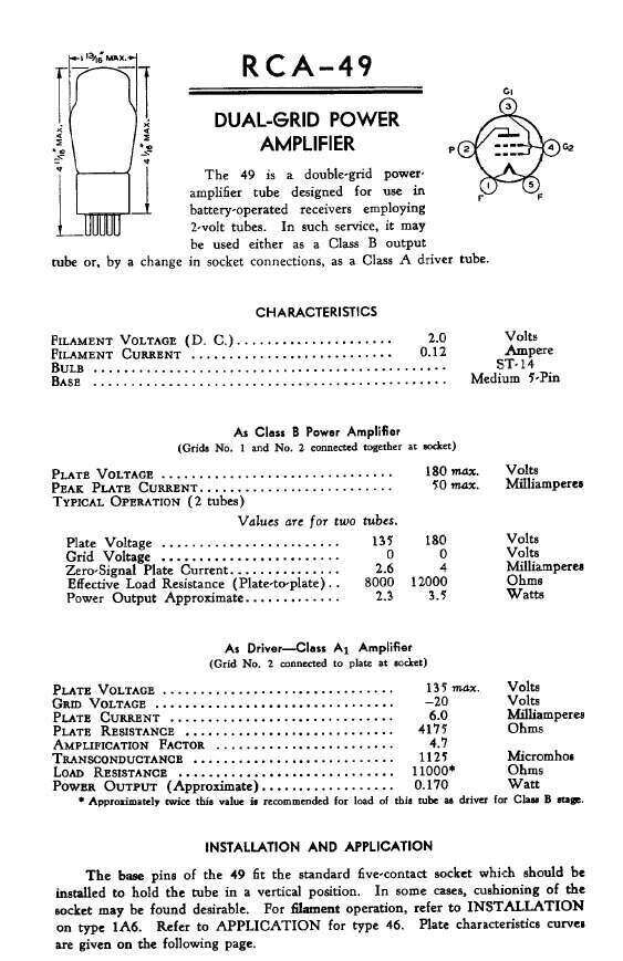 for use as a class B output valve for battery receivers. The 49 is an unusual