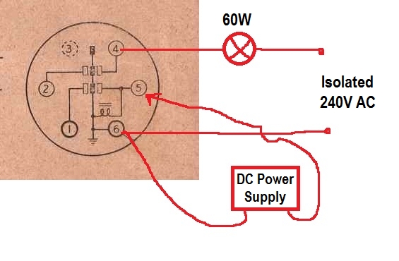 As per the previous diagram, an isolated 240V AC supply is connected across the secondary pull contact, through a light bulb for current limiting. Next, a DC power supply is connected across the primary pull contact and coil. Since this is a shunt drive type, the voltage should be twice that of the vibrator. E.g., use 12V for a 6V vibrator. (However, the rated supply voltage will work if that's all is available). The power supply must also be current limited, in case the contacts do make connection. About 250 - 500mA will do. Now, rapidly make and break the coil connection. The idea is that the coil will pull the secondary contacts together, so that the high voltage will burn away the oxide. Once the lamp lights reliably each time the coil is actuated, it shows the contacts are now functional.